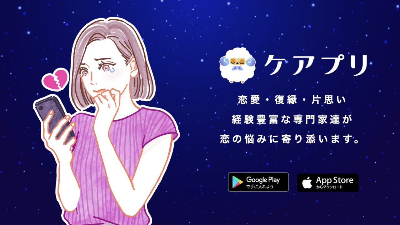 ケアプリは、恋愛や復縁、片思い、不倫、結婚といったさまざまな悩みを抱える方に向けた相談アプリです。